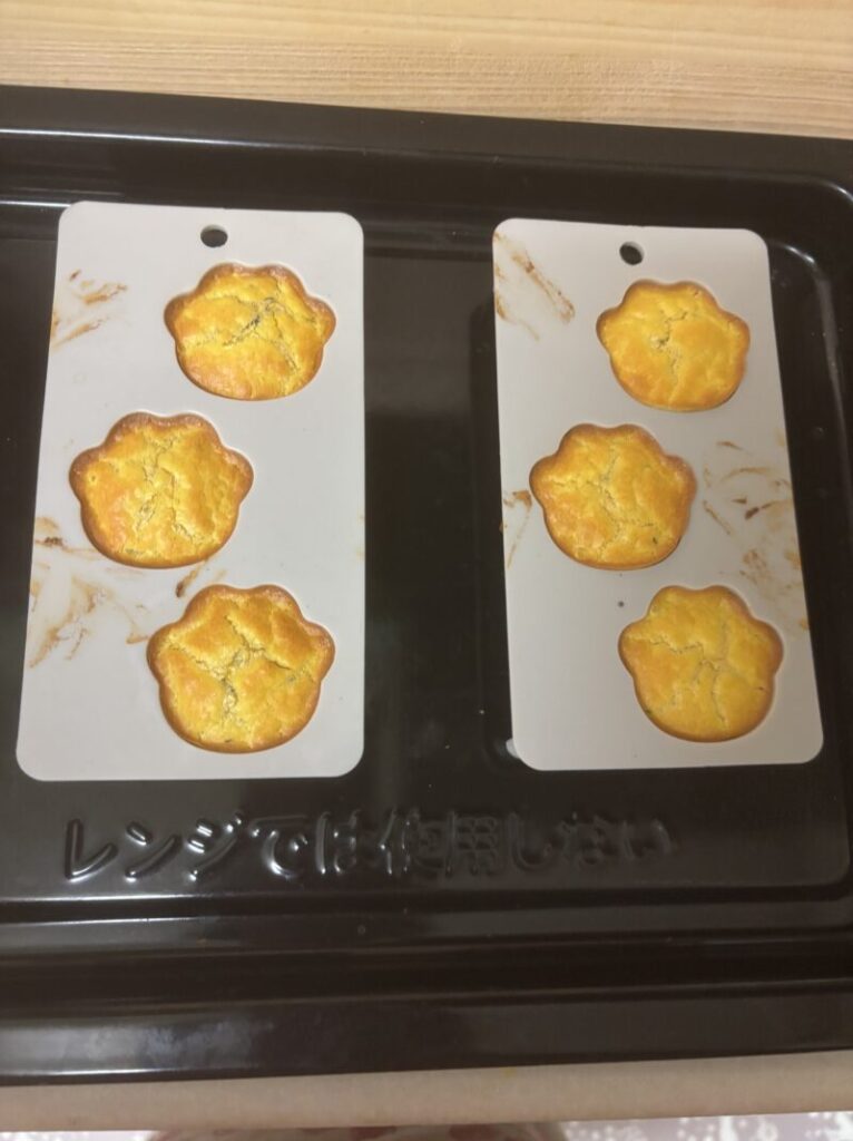 100均で見つけた可愛い肉球の型で焼いてみました🐾