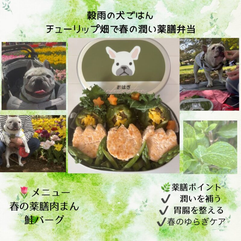 穀雨の犬ごはん【チューリップ畑で春の潤い薬膳弁当🌷】